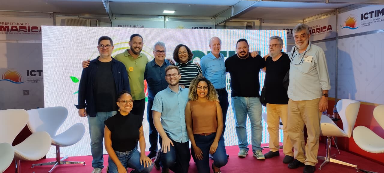 Às 19h, o professor retornou ao palco acompanhado da professora Barbara Oggioni, também do PEP, e da equipe do Projeto ECT (Ecossistemas Cooperativos Territorializados) – formada por Luckas Bruce, Rute Oliveira e Aline – em uma apresentação conjunta. Na mesma data e horário, a Diretoria de Tecnologia promoveu a palestra “Novos modelos de desenvolvimento local e transição para a sustentabilidade”, com a participação de Márcio Campos, Prof. Dr. Francisco Duarte e Prof. Dr. Clorisval Pereira, abordando alternativas inovadoras para o crescimento sustentável de Maricá e região.